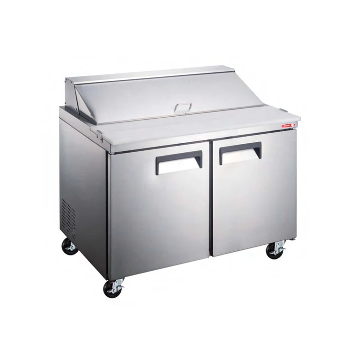 MESA DE PREPARACIÓN DE ALIMENTOS DE 48 PULGADAS, CONSTRUIDA EN ACERO INOXIDABLE PARA MAYOR DURABILIDAD E HIGIENE. CUENTA CON INSERTOS EN LA PARTE SUPERIOR QUE FACILITAN EL ACCESO A LOS DISTINTOS INGREDIENTES PARA UNA RÁPIDA PREPARACIÓN.